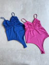 Tela brillosa. Escotado. Bretel volado. Talle unico (abarca hasta un Talle M) Poco busto.