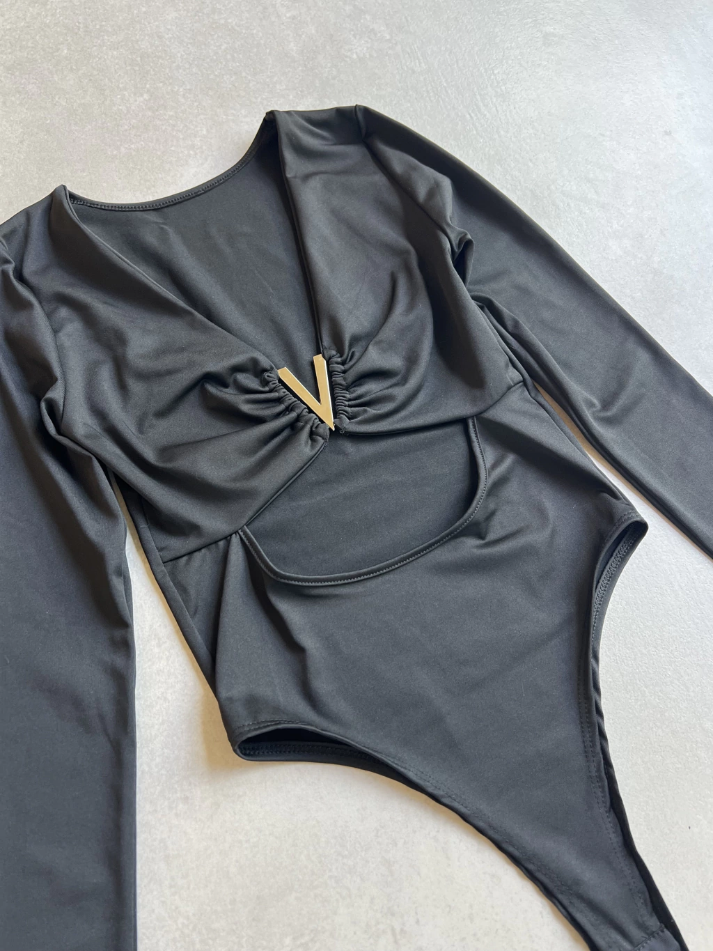 Tela microfibra. Detalle hebilla V en el pecho. Aberturas adelante. Manga larga. Al cuerpo. Talle unico.