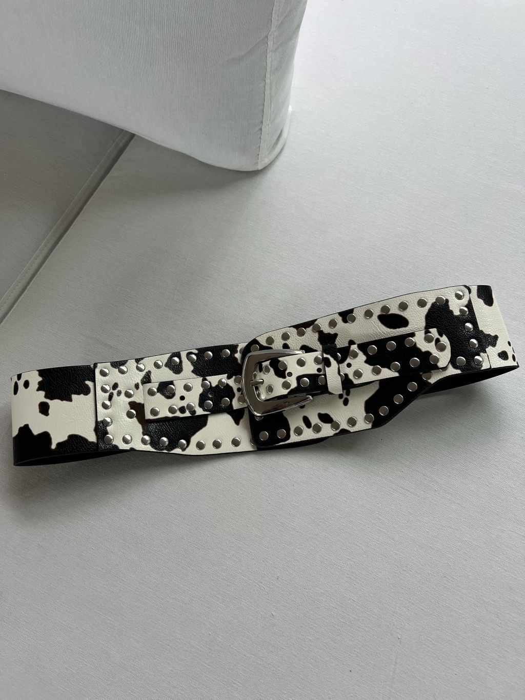 SIN CAMBIO. Cinto de cuerina. Tachas. Estampa vaca.