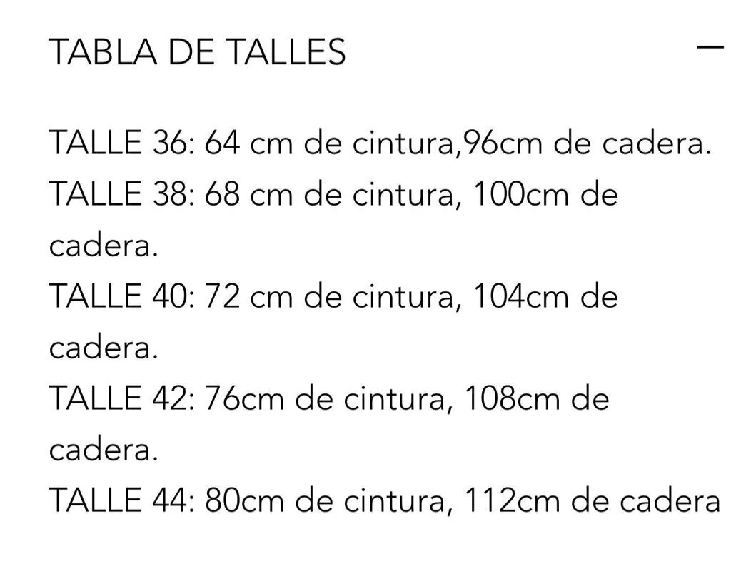 | MEDIDAS | TALLE 36 | TALLE 38 | TALLE 40 | TALLE 42 | TALLE 44 |
