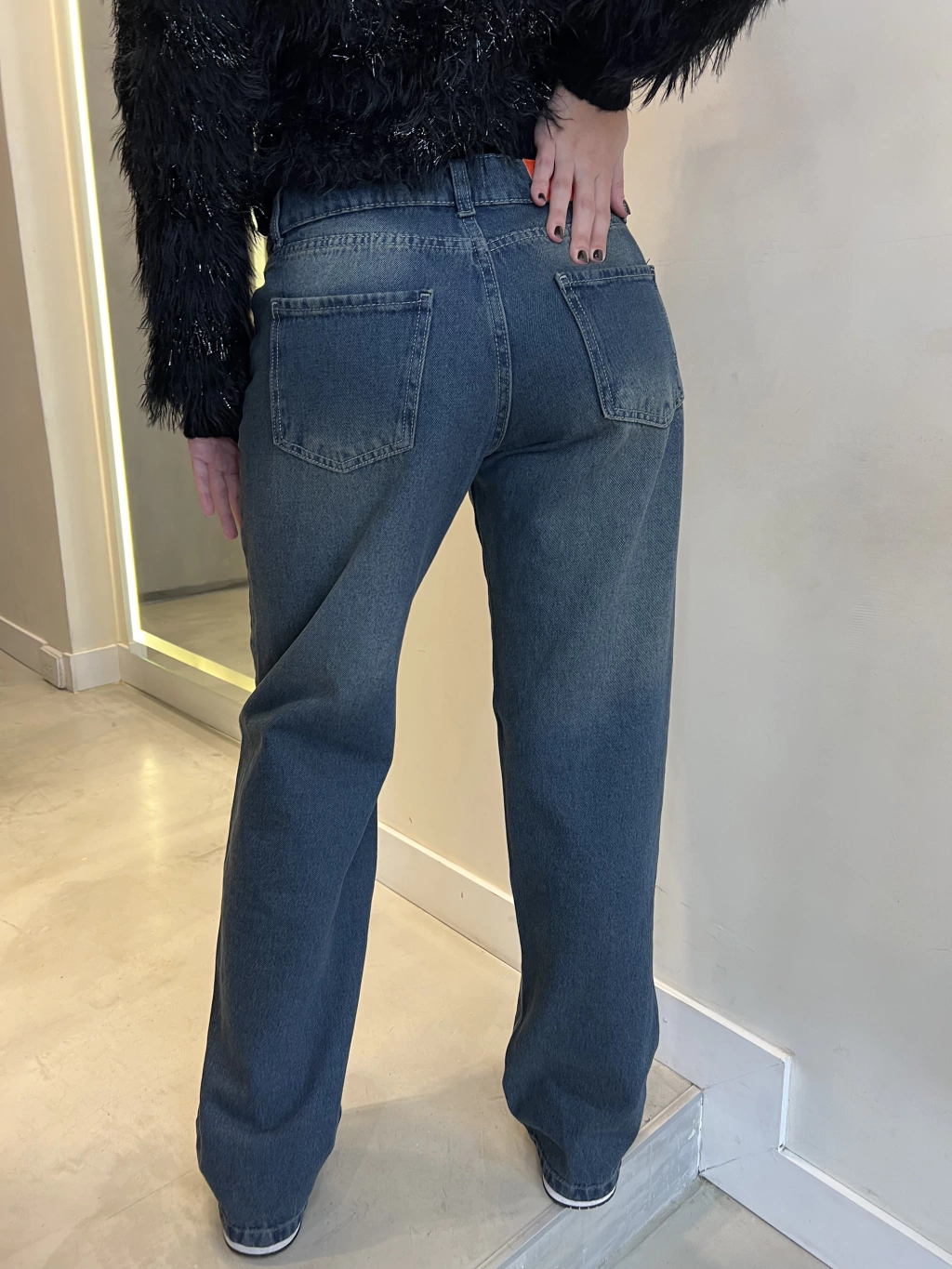 Tiro bajo. Wide leg. Detalle bigotes en laterales. Color azul lavado. Talles.