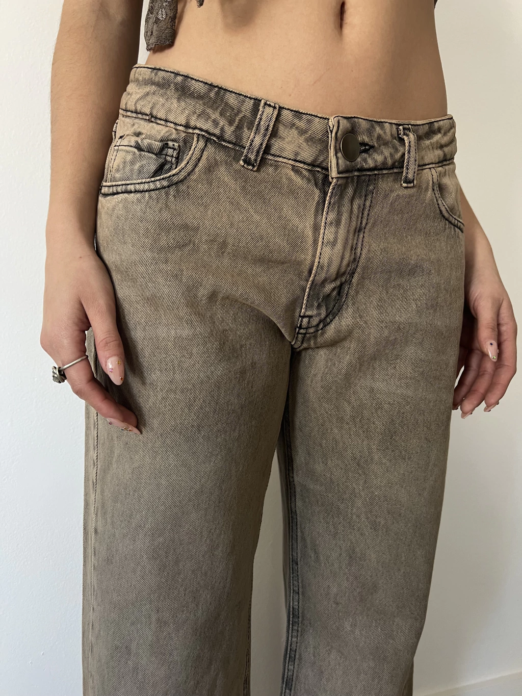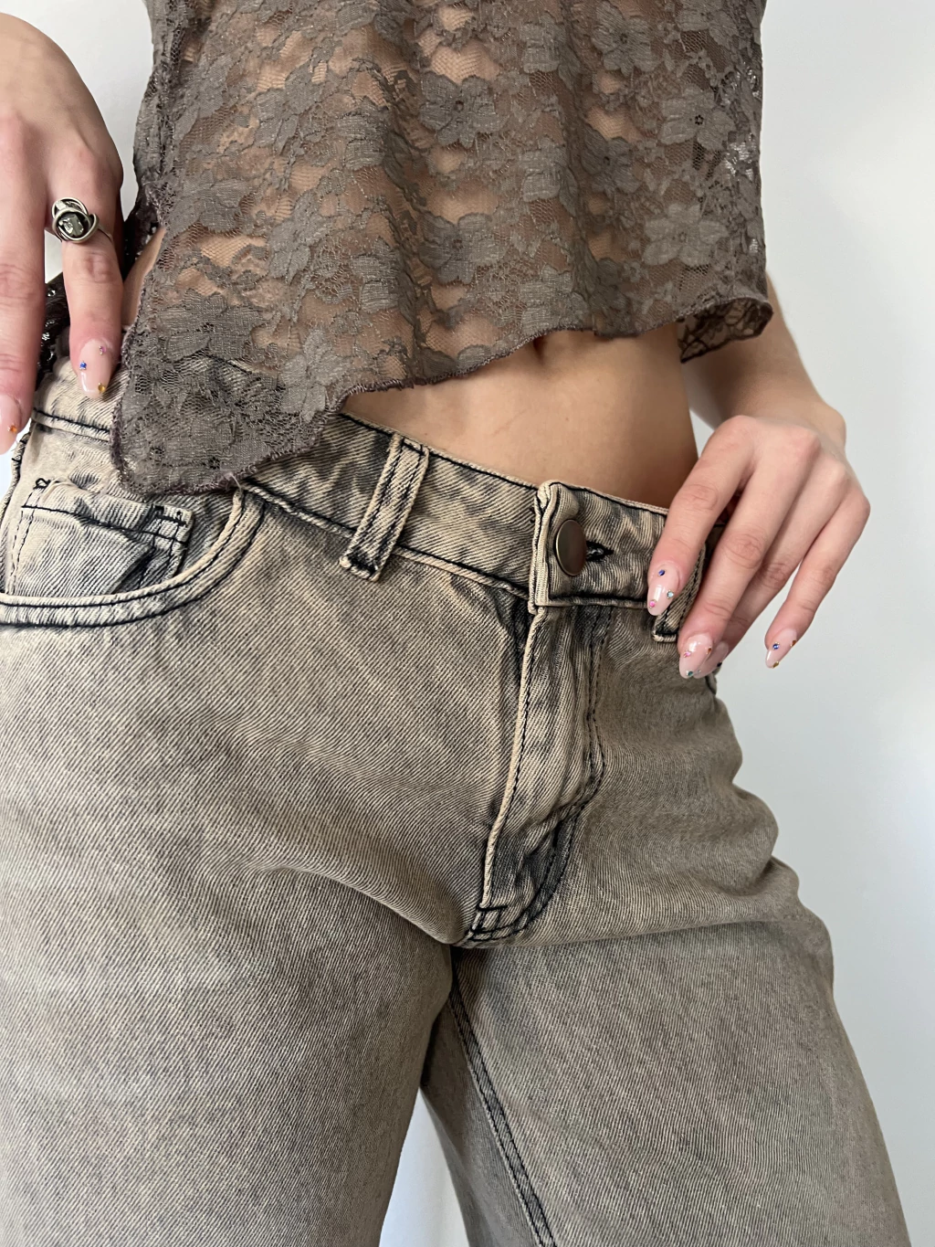 Tiro bajo. Wide leg. Detalle bigotes en laterales. Color azul lavado. Talles.