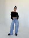 Tiro alto. Elastizado chupin al cuerpo. Desflecado en botamanga.