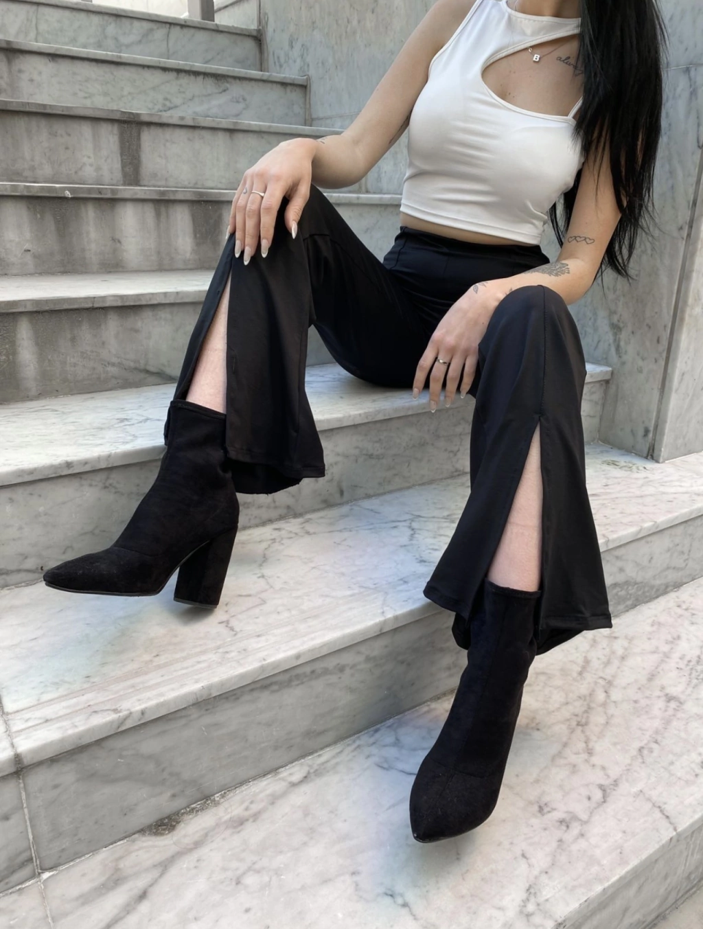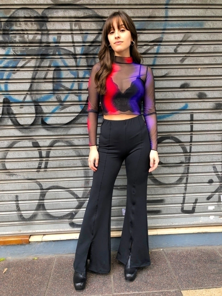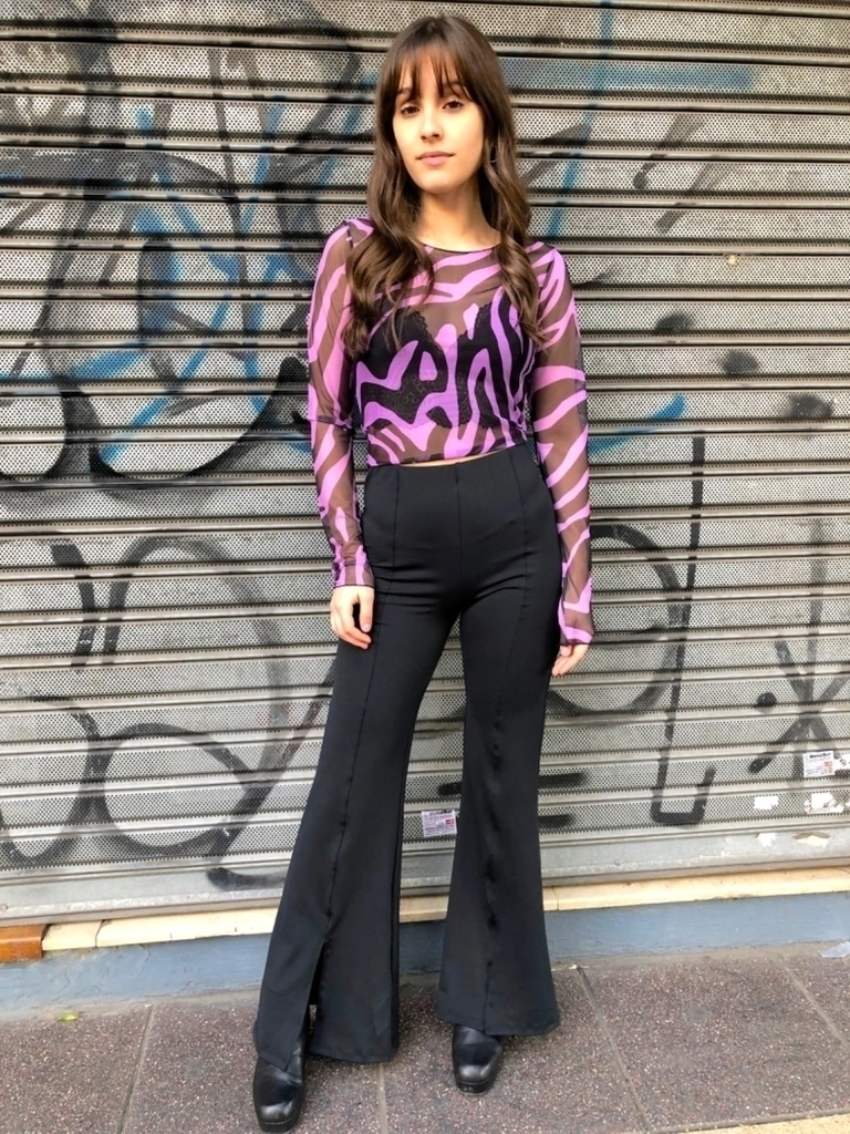 Tiro alto. Tela microfibra. Detalle tajos en piernas. Talle unico amplio (se amolda desde un talle 36 a un talle 40 amplio)