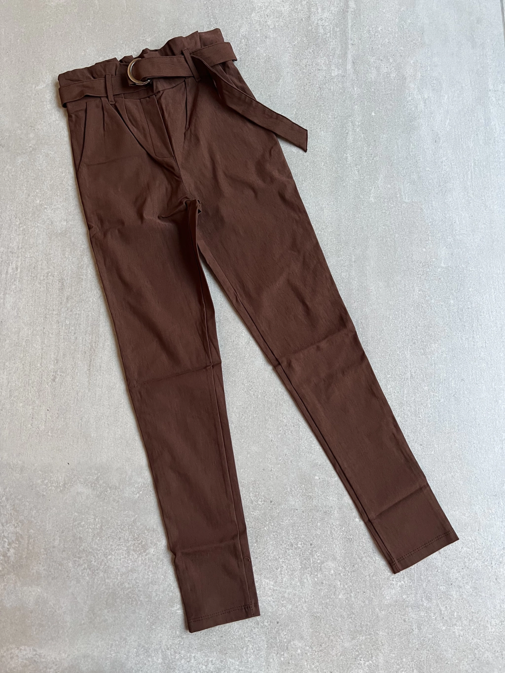 Tela Bengalina elastizada. Cinto (se puede sacar) tiro alto. Chupin. Al cuerpo. Cintura elástica. Talles amplios.