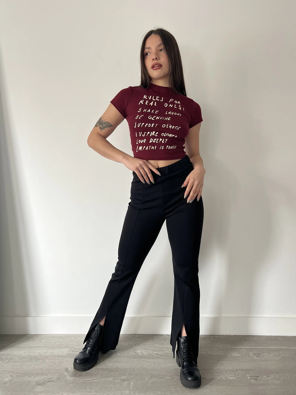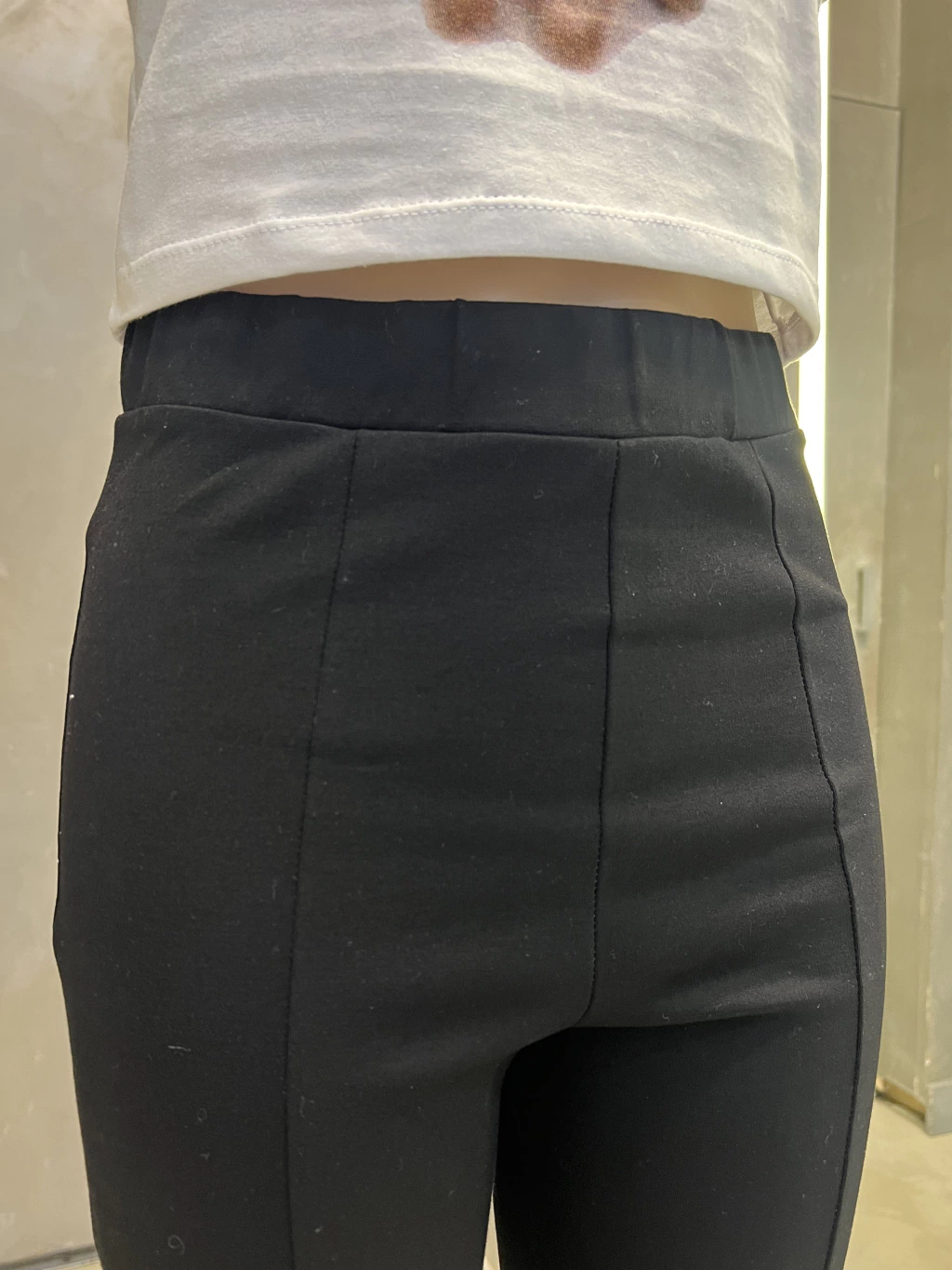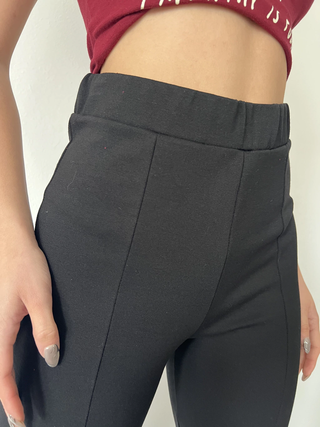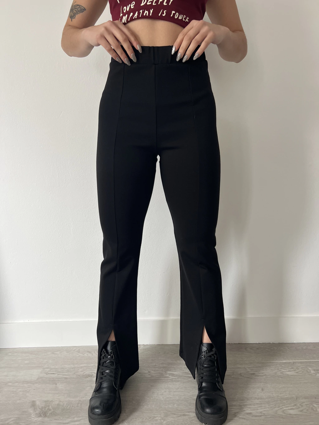 Tela punto roma. Corte calza. Detalle tajo abajo al frente. Cintura elástica. Al cuerpo. Talle UNICO amplio (la tela cede en el cuerpo y se amolda a varios talles)