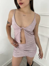 Tela encaje. Tiene short adentro. Tajo adelante. Tiro medio/bajo. Talle unico amplio (abarca desde un talle 36 a un 40 amplio)