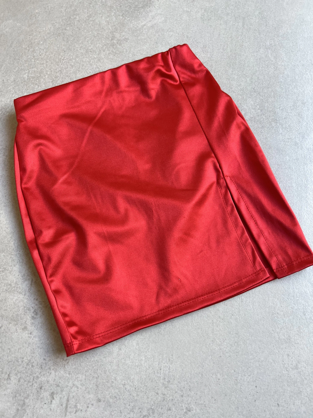 Tiro alto. Tela saten. Tajo adelante. Al cuerpo. Talle unico (abarca hasta un talle 40)