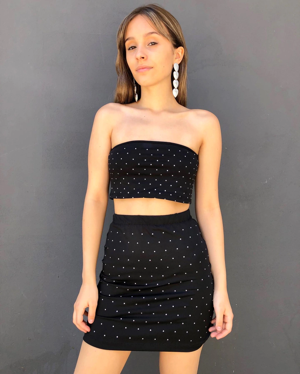 Tiro alto. Tela lycra. Detalle strass brillo adelante. Talle unico amplio (abarca hasta un Talle 40 amplio) Modelo al cuerpo.