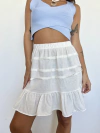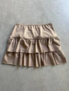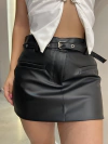 Tela cuerina. Tiro bajo. Tiras cruzadas con tachas adelante. Cierre atrás. Talles.