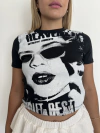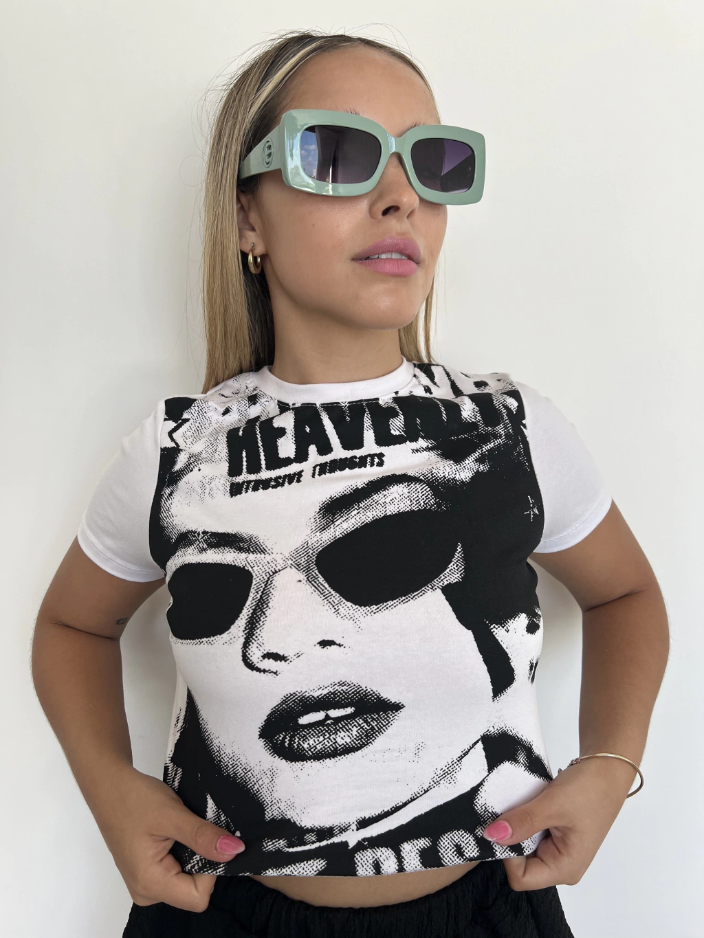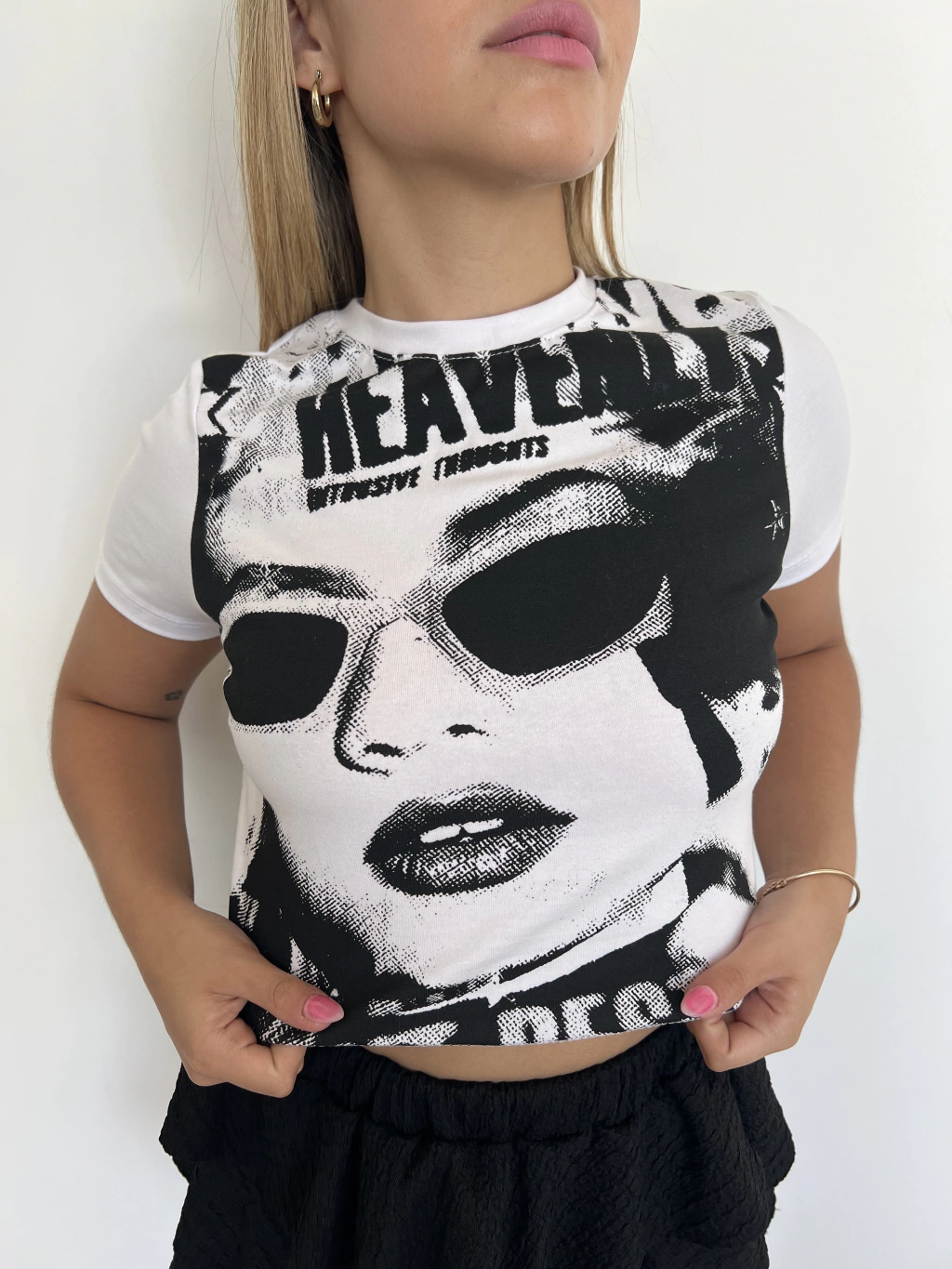 Tela algodón elastizado. Baby tee al cuerpo. Estampa cara. Talle unico
