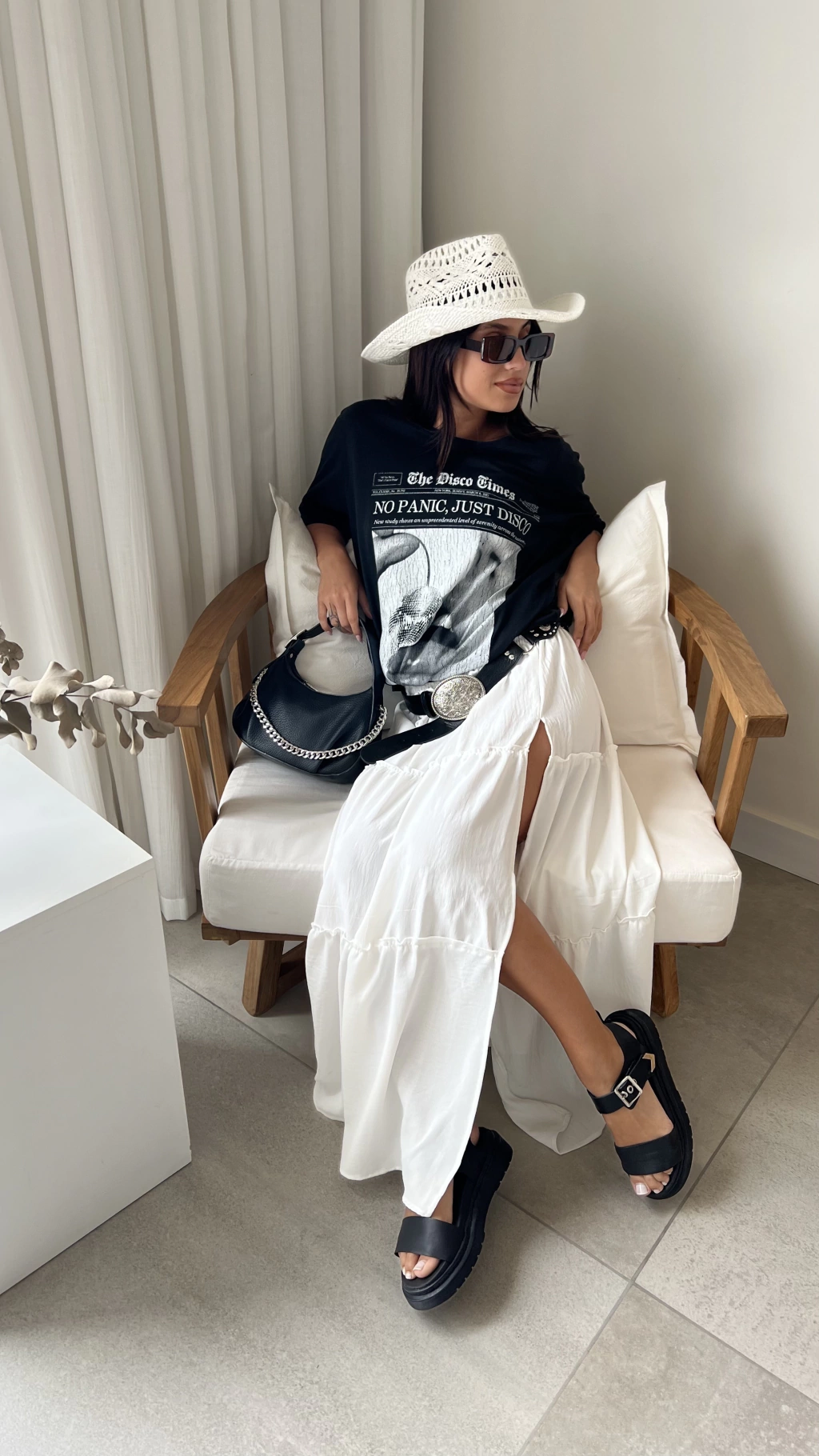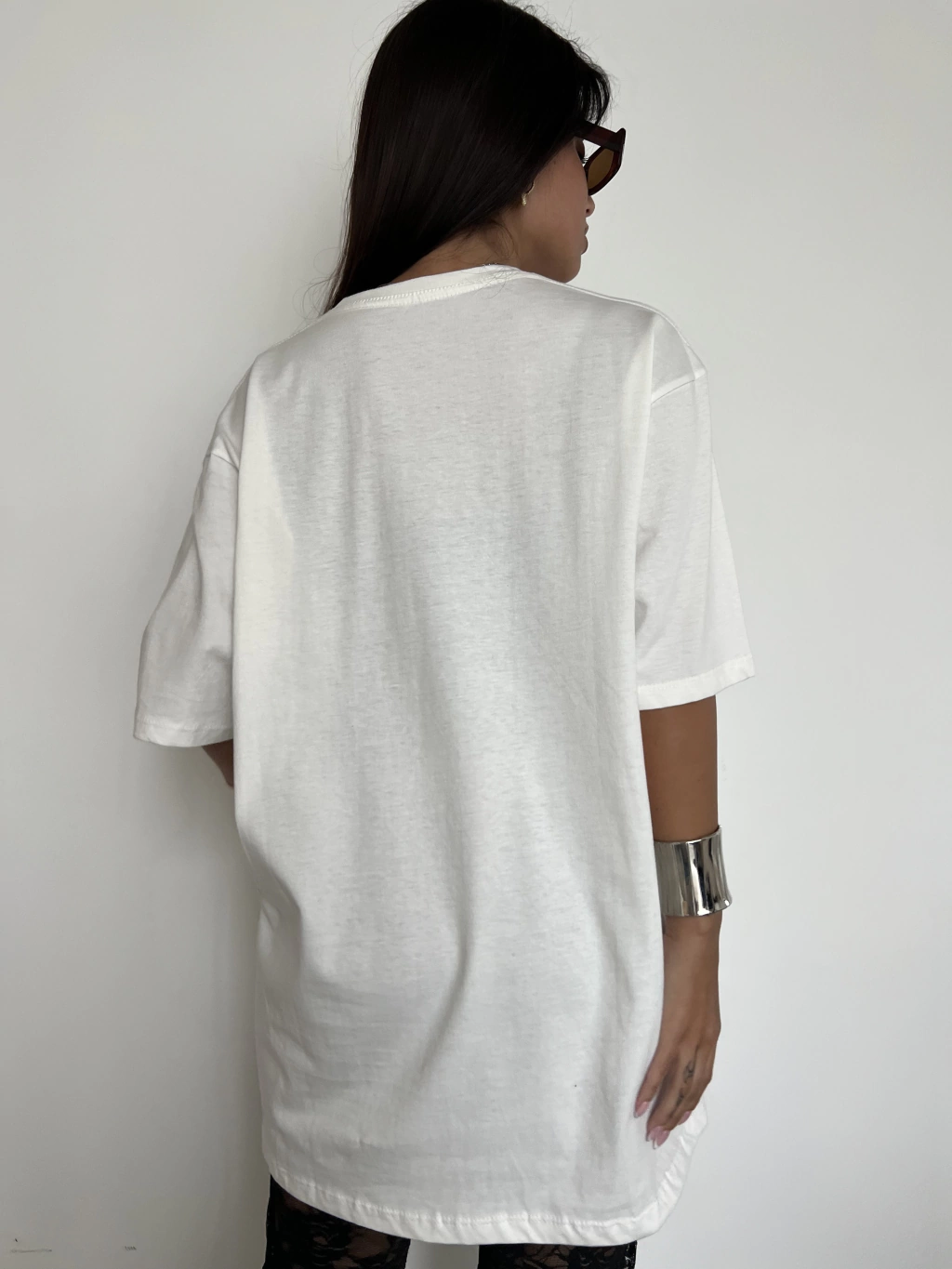 Tela algodón. Estampa dibujo. Modelo oversize amplio (abarca hasta un talle L)