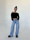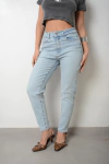 Jean elastizado. Tiro alto. Desflecado en ruedo.