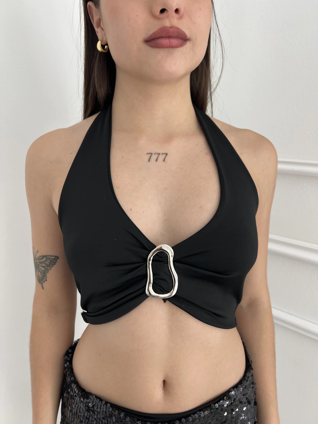 Tela microfibra. Detalle accesorio hebilla en pecho. Al cuerpo. Talle unico.