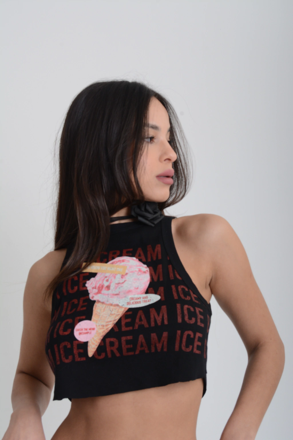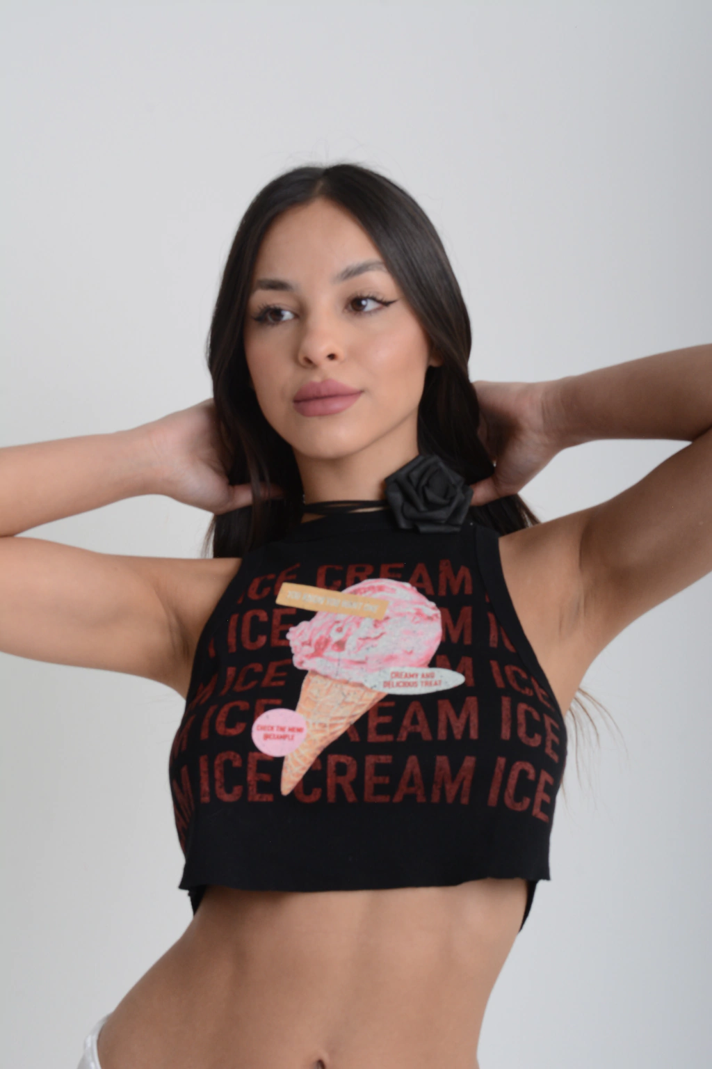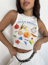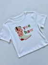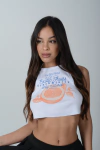 Top crop. Tela algodon. Modelo baby tee. Estampa. Al cuerpo.